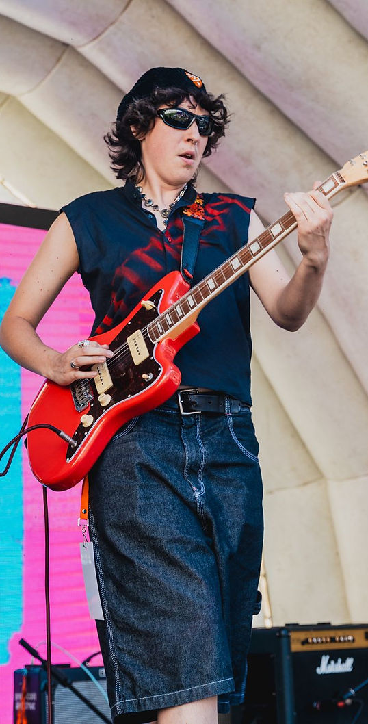 Crimson, the new indie-rock sensation, hails from Maidstone, Kent and is now proudly based in Brighton. Unapologetically ruthless, a queer heartbreaker, and a natural-born rockstar, Crimson Elliott fronts the band with fierce charisma. The lineup is completed by James Cairns on drums, Hannah Stevens on trumpet, and Genevieve Carey on bass.